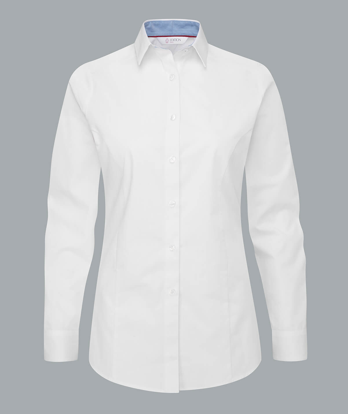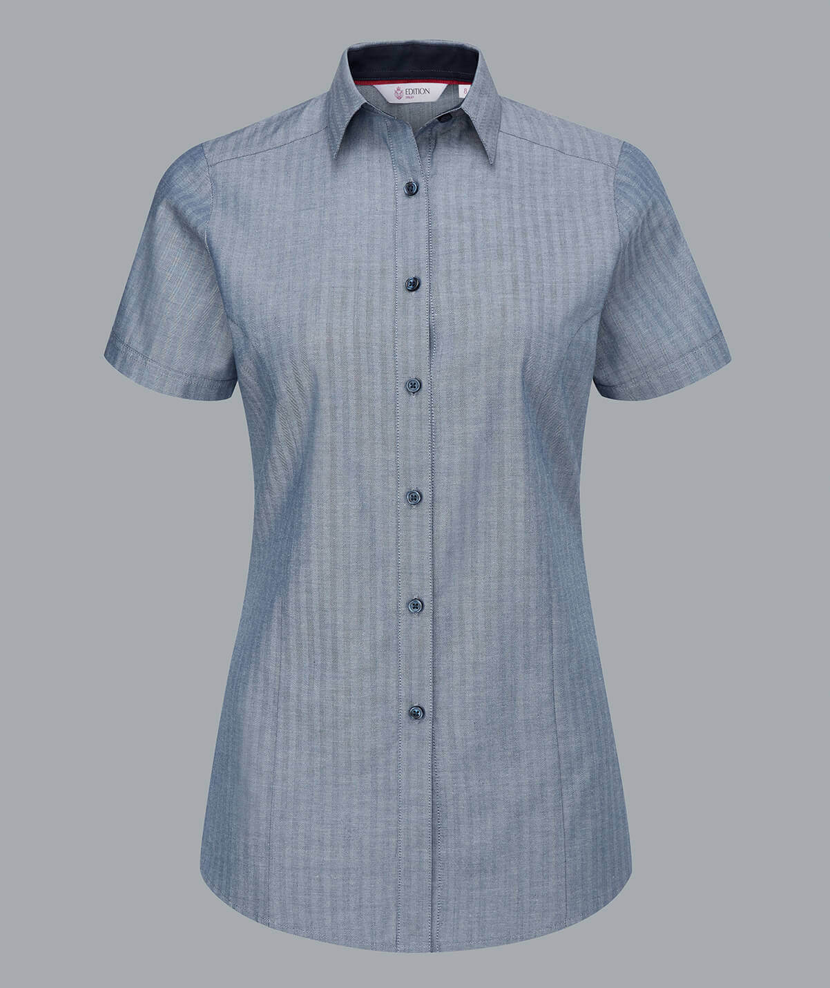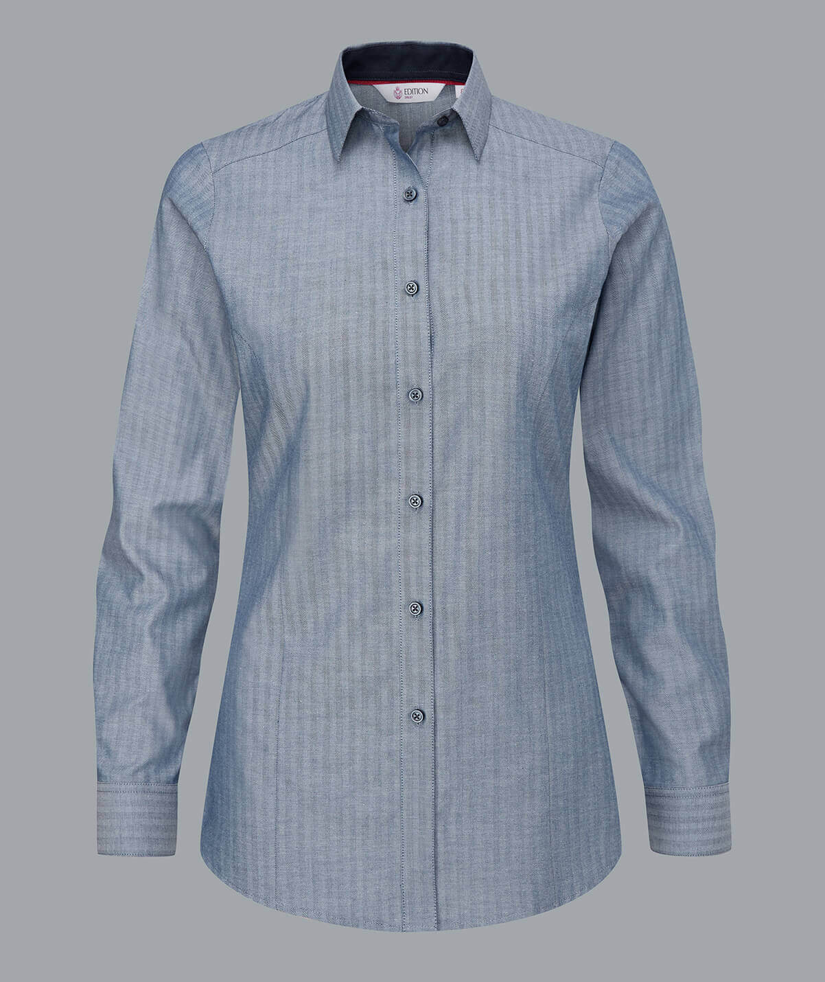 The Faith herringbone blouse, partner style to Ennis. Faith has princess line panels, dropped shoulders & a neat feminine collar to create a polished blouse worthy of any working wardrobe. Try Nuala for a subtly striped alternative.