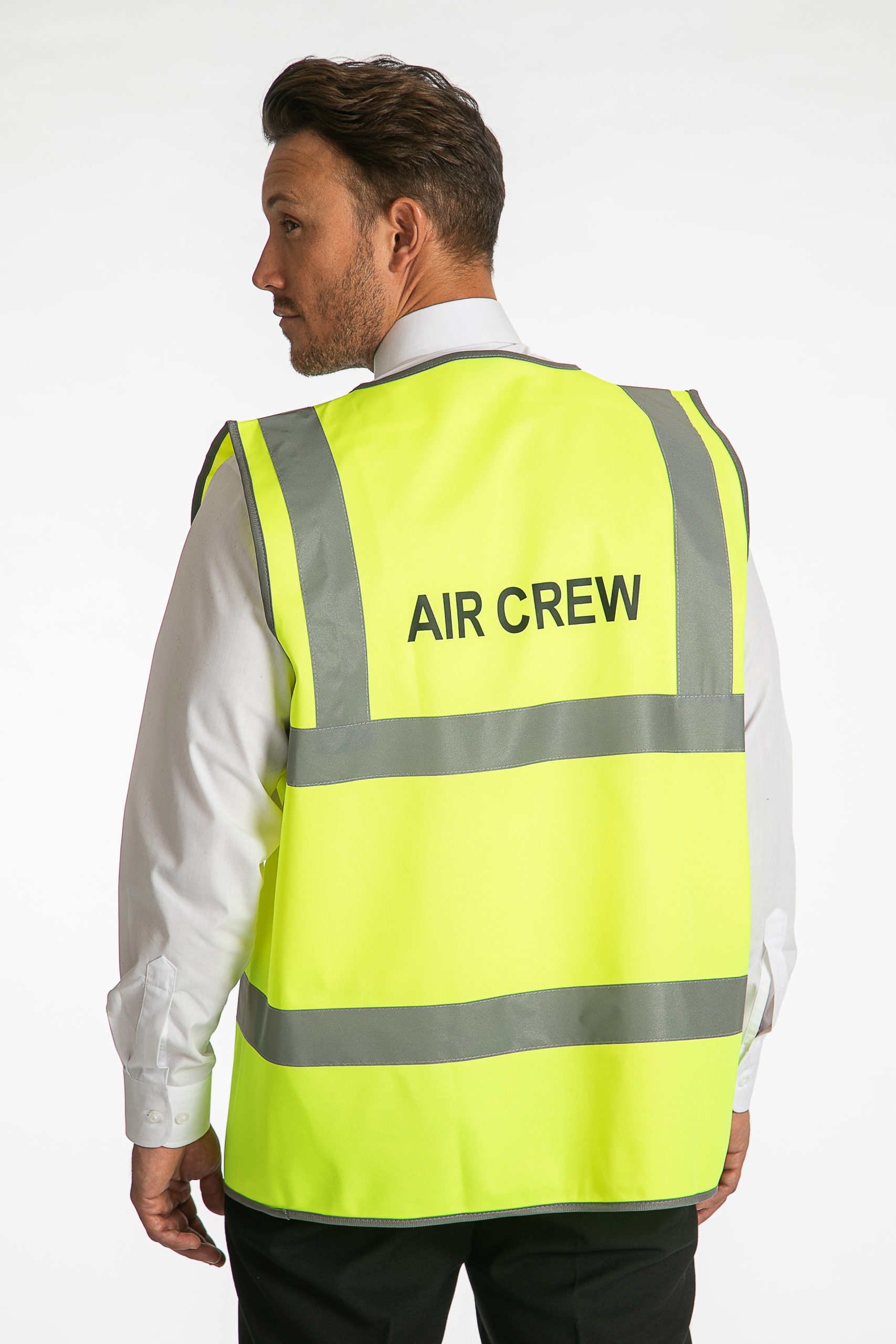 Class 2 vest / waistcoat (double reflective band on body and shoulders) with Air Crew Written on Back. The waistcoat is designed to be worn over a jacket / coat.
