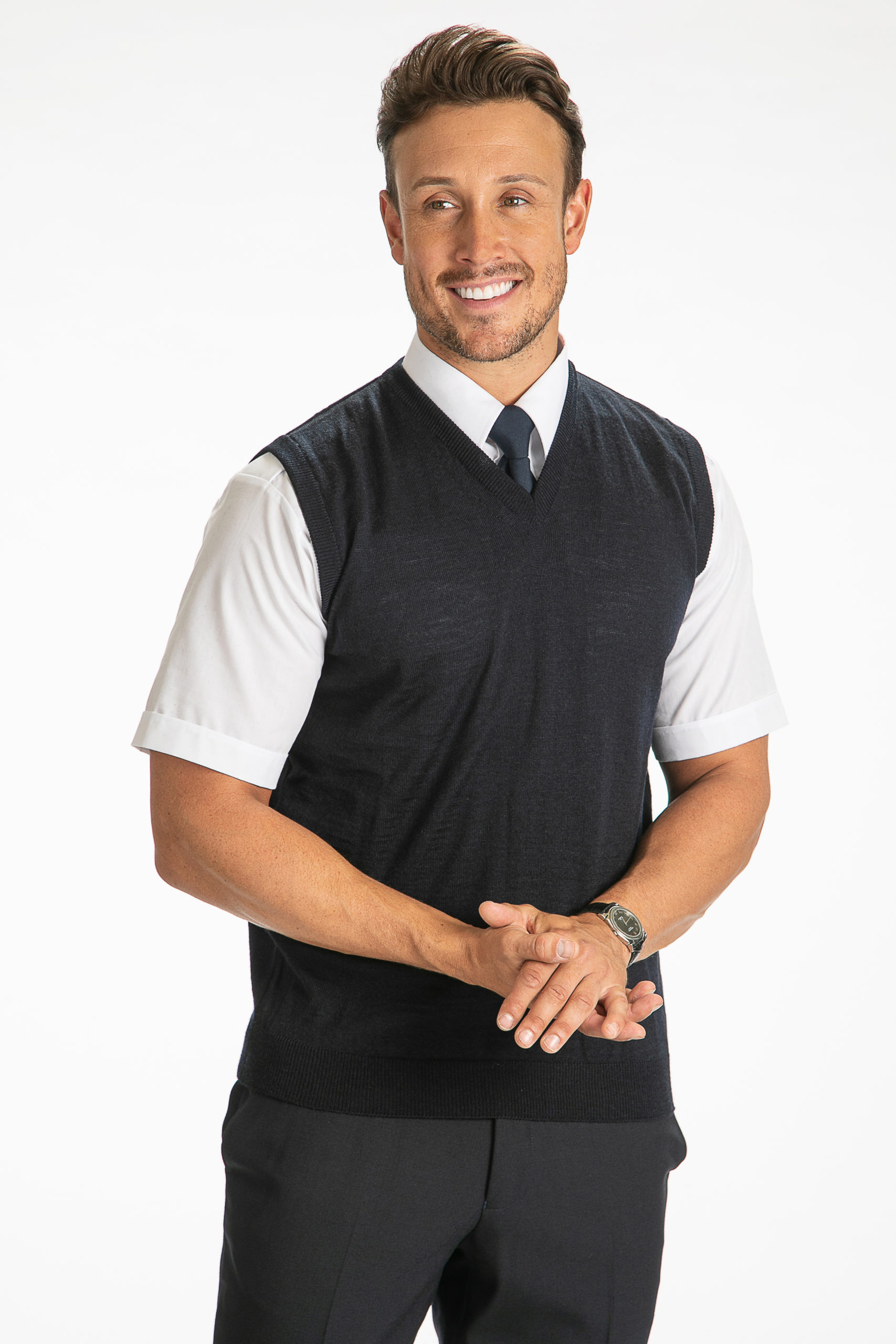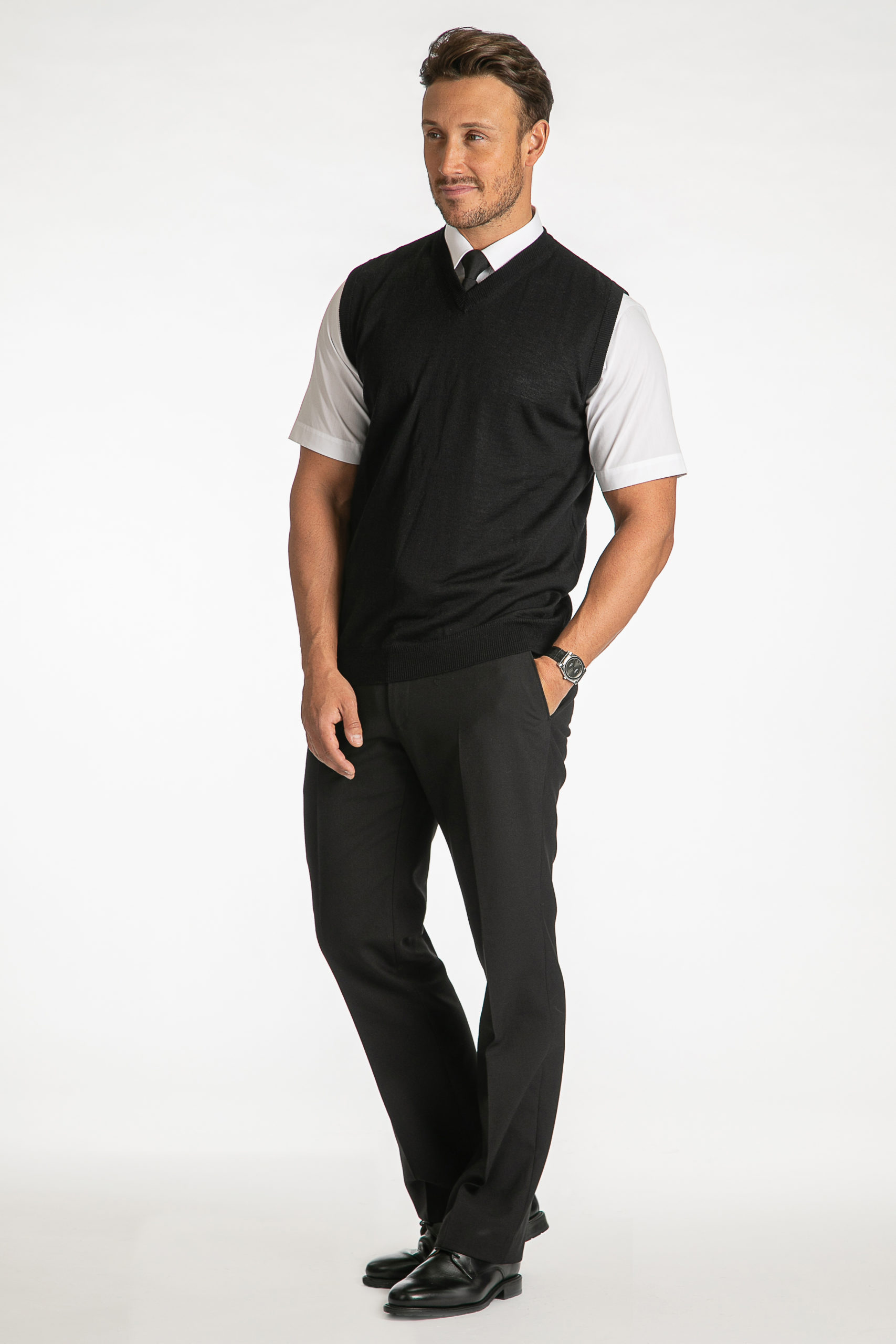 Italian Fine Gauge Merino Wool Black / Navy Pilot Uniform Slipover