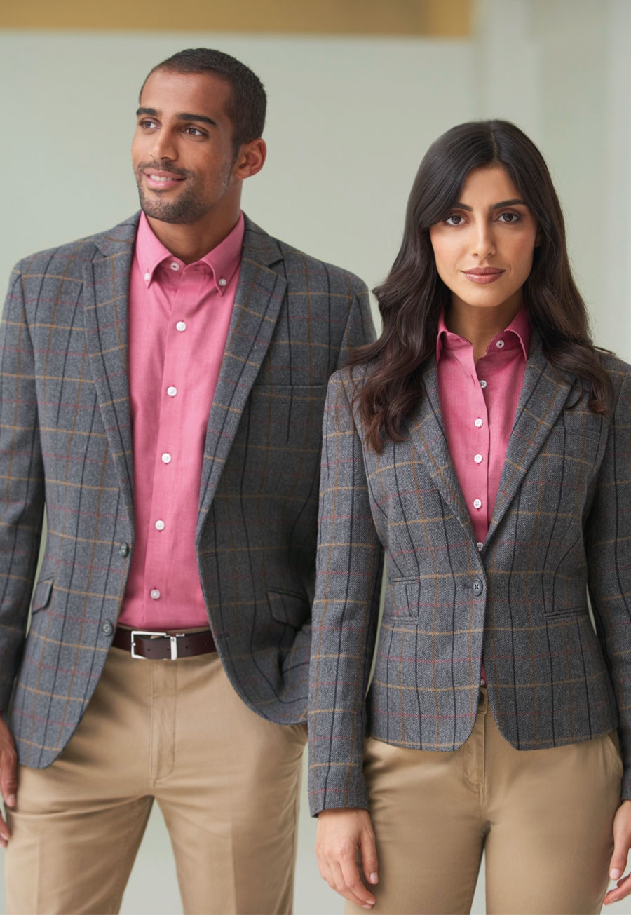 Centre back length @ size 12R = 55.5 cm Dry Clean Only 40% Wool, 40% Polyester, 20% Mixed fibres, Teflon Finished