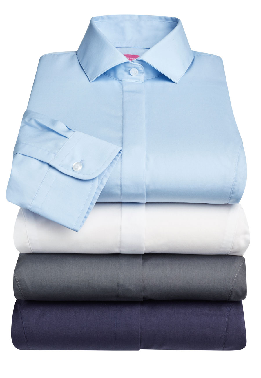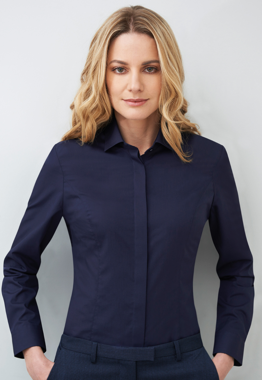 Cotton rich, long sleeve ladies blouse, easy care and easy iron practicality.