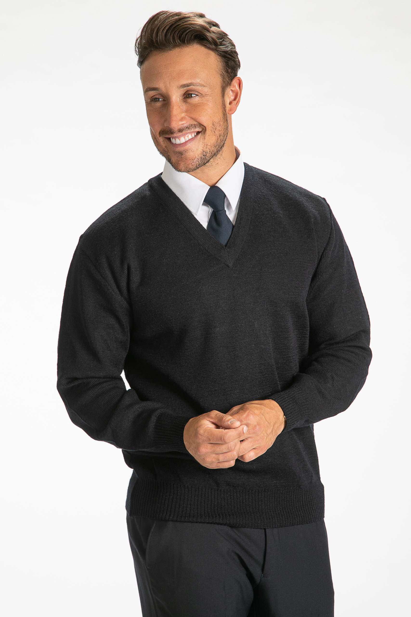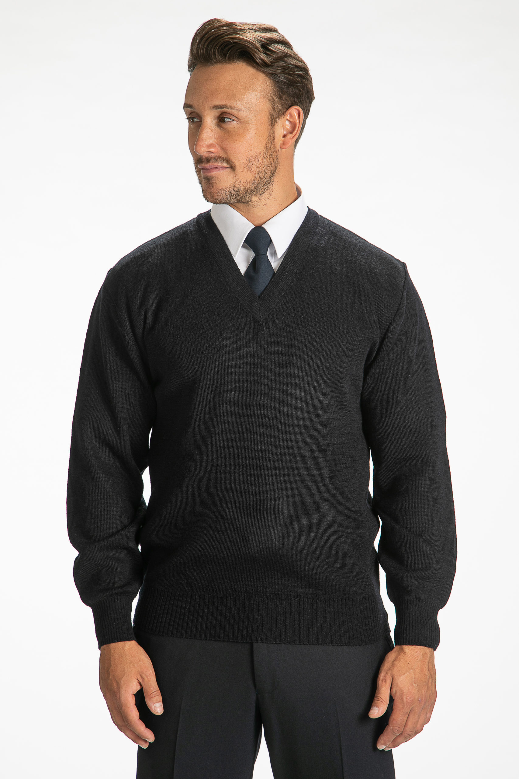 v-neck jumper made from 50/50 wool/acrylic. Black / Navy Style 77057